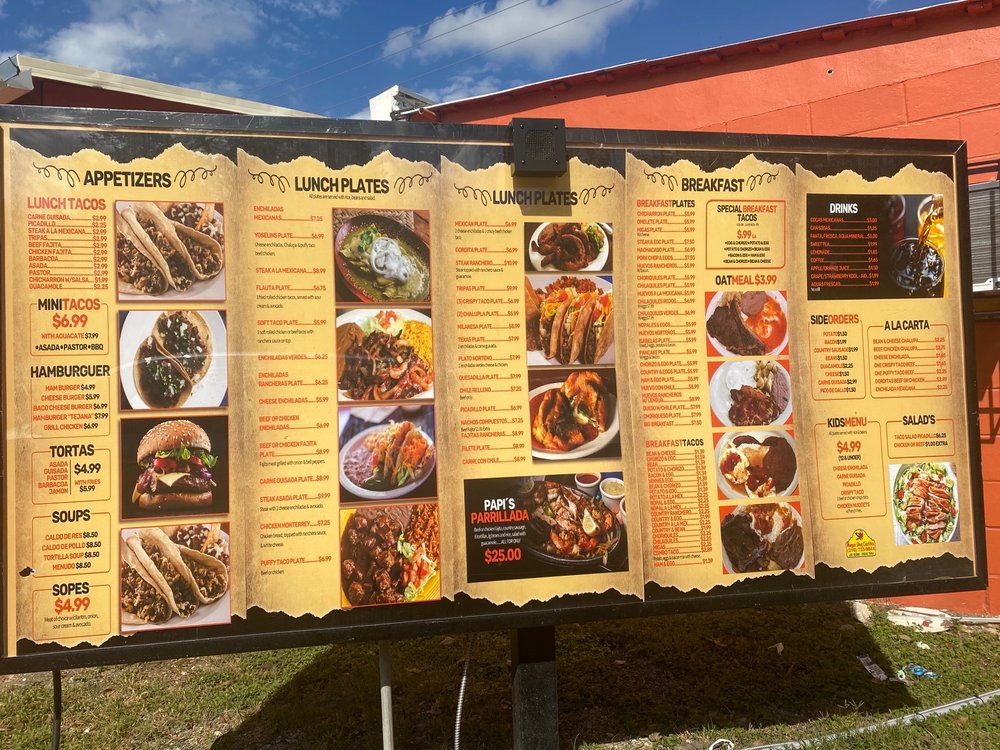 Papi’s Mexican Restaurant offers amenities such as Takeout, Delivery, Good for Kids, Outdoor Parking, Parking Lot, Lunch, Accepts Contactless Payments, Takeout, Delivery, Good for Kids, ensuring a comfortable and convenient experience for clients.